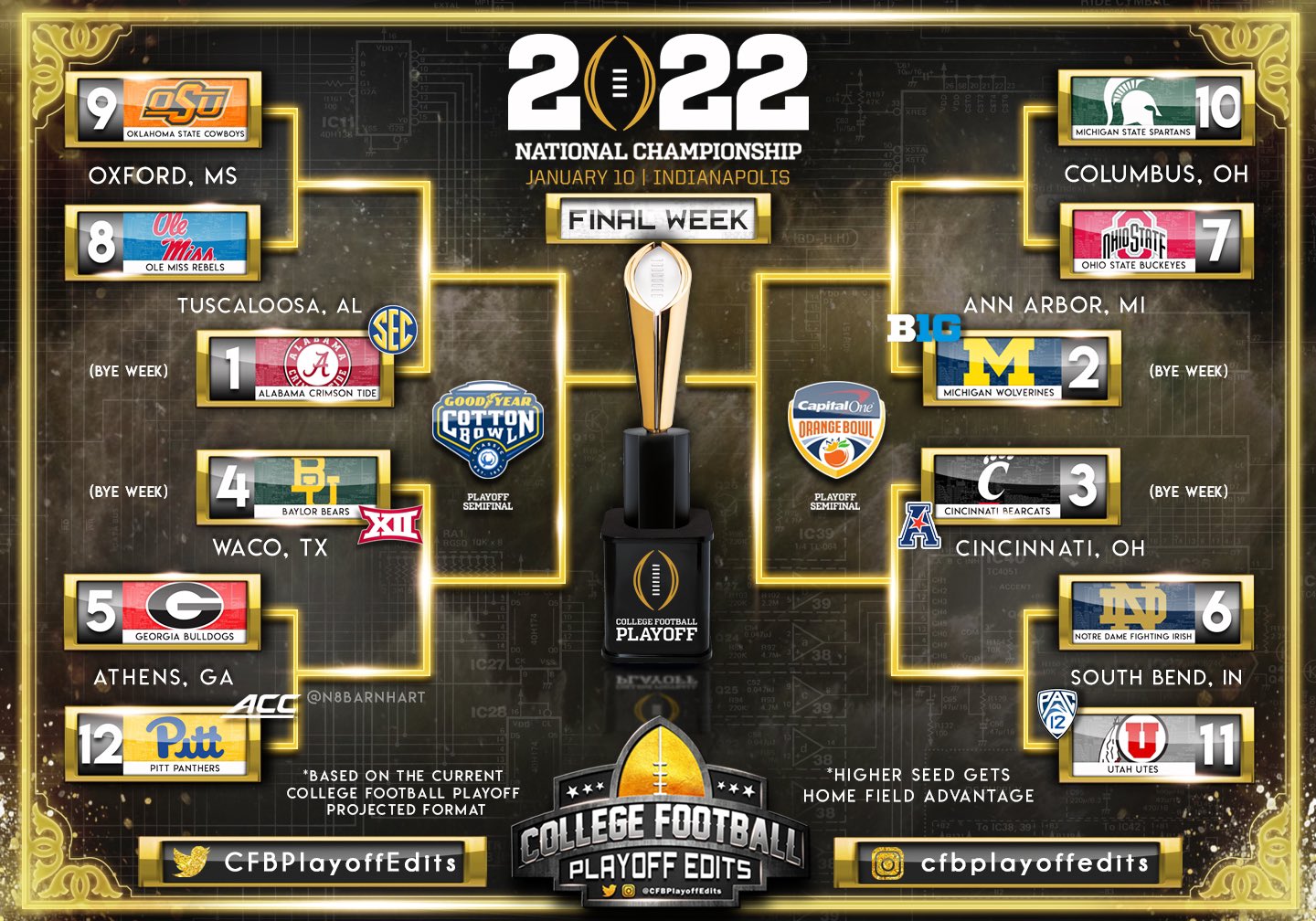 Cfb Playoff Edits On Twitter The Cfp Board Of Managers Will Meet To Discuss College Football Playoff Expansion On Friday Here Is How The 12 Team Model With Home Playoff Games From